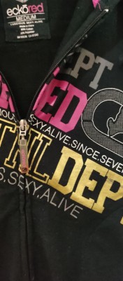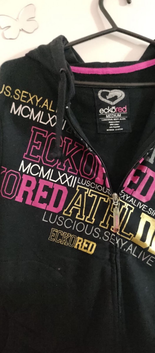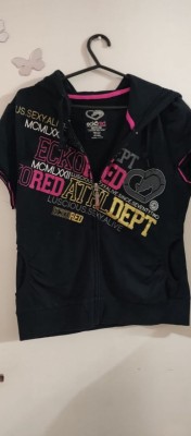 BLUSA/ COLETE ECKORED TAM M PRETO E PINK COM CAPUZ DE MOLETOM, SEMI NOVA. 44CM LARGURA, CONFORME FOTOS