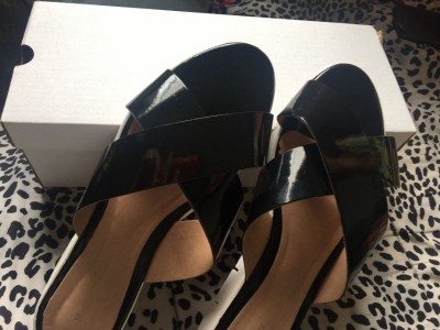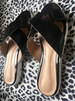 RASTEIRINHA NÚMERO 37, TIRAS PRETAS COM SOLADO BRANCO, SEM USO, NA CAIXA, CONFORME FOTOS